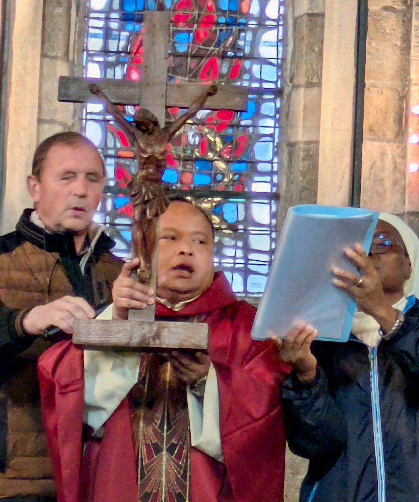 C'est la Passion du Seigneur que nous avons célébré. Nous avons suivi le parcours de Jésus depuis son agonie au Jardin des oliviers, son arrestation, sa condamnation à la plus infâme peine, le supplice de la croix, sa mort, son ensevelissement au tombeau raconté par Saint Jean dans son Evangile.