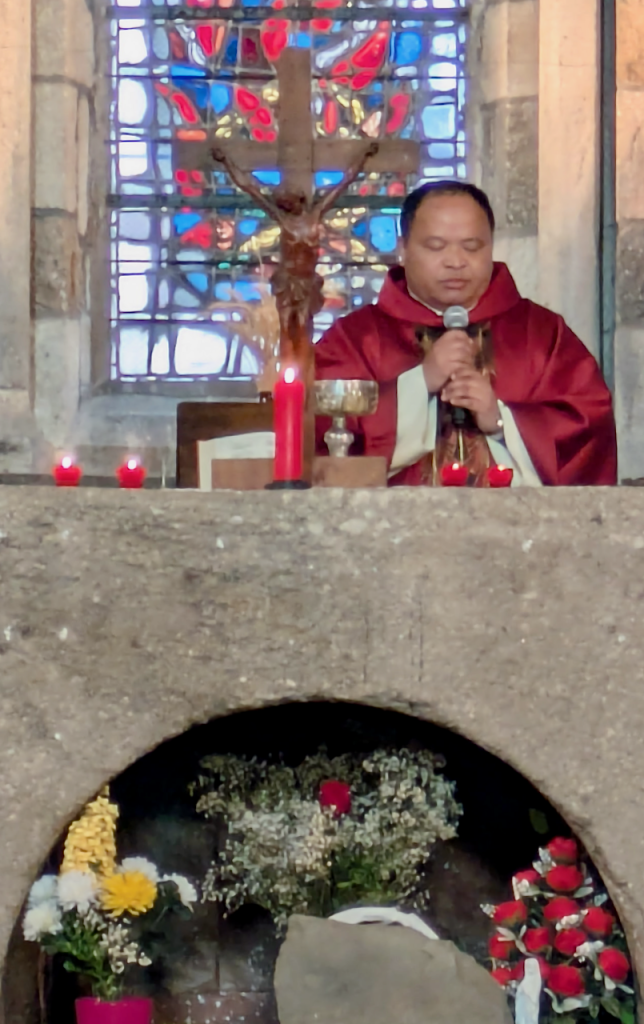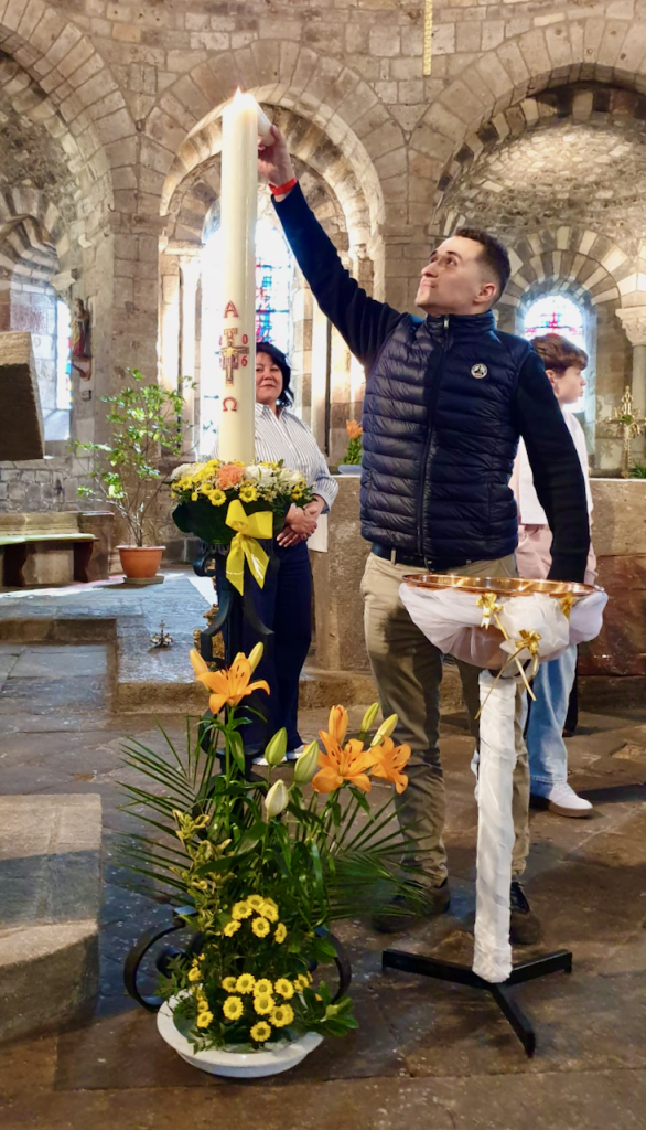 Nous avons aussi donné le Baptême à trois catéchumènes : Jeanne, Justine et Clément dont la foi naissante nous a réjoui.