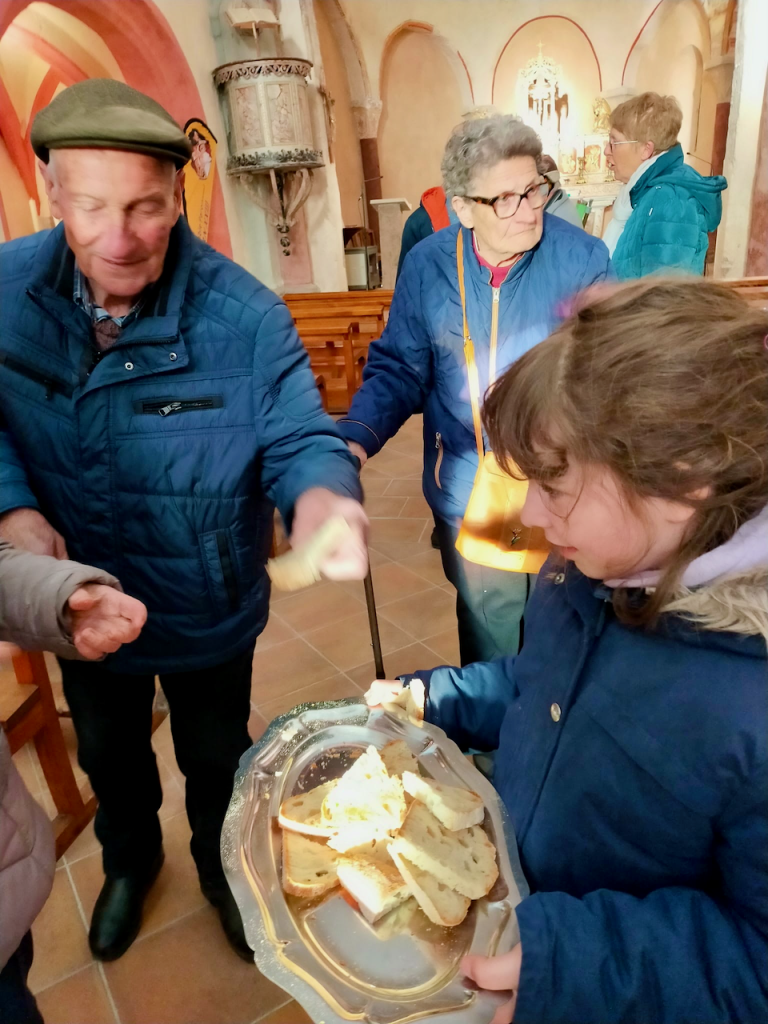 Au cours du repas le Seigneur pris du pain, le consacra et le distribua à ces disciples. C'est aussi ce qui se passe à la fin de cette cérémonie et chacun a pu recevoir un morceau de pain consacré et l'emporter à sa maison.
